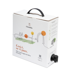 Prova le nostre nuove Bag In Box con il manico in stoffa riciclabile invece che in plastica! La bag in box è il formato ideale per chi vuole utilizzare il nostro olio in cucina in modo rapido e pulito. La scatola di cartone riciclabile e il sacchetto in materiale plastico poliaccoppiato specifico per gli alimenti preservano le qualità organolettiche dell’olio e lo proteggono dalla luce, dal calore e dall’aria. Il rubinetto dispenser permette di spillare il contenuto all’occorrenza, senza bisogno di complicati travasi.